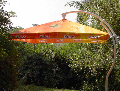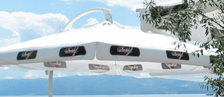 Aluminiumska konstrukcija Lift mehanizam za otvarawe {pici 15x30mm i stolb ø80mm Tekstilno platno, vodonepropustlivo, izraboteno od Poliester 100%, 150-200 gr/m2 i Pamuk/Poliester 200-350 gr/m2 Pe~at- full color